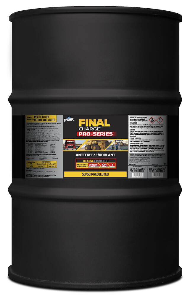 †Requiere el mantenimiento adecuado, que incluye un lavado y llenado completos del sistema de enfriamiento y el llenado posterior, según sea necesario, con anticongelante/refrigerante prediluido de 50/50 FINAL CHARGE® SERIE PRO o una mezcla 50/50 de concentrado de anticongelante/refrigerante FINAL CHARGE® SERIE PRO y agua. Para garantizar la protección, no se pueden usar otros productos o suplementos de productos. Visite www.peakhd.com para obtener todos los detalles de la garantía. Siga las recomendaciones del OEM para el mantenimiento especificado.