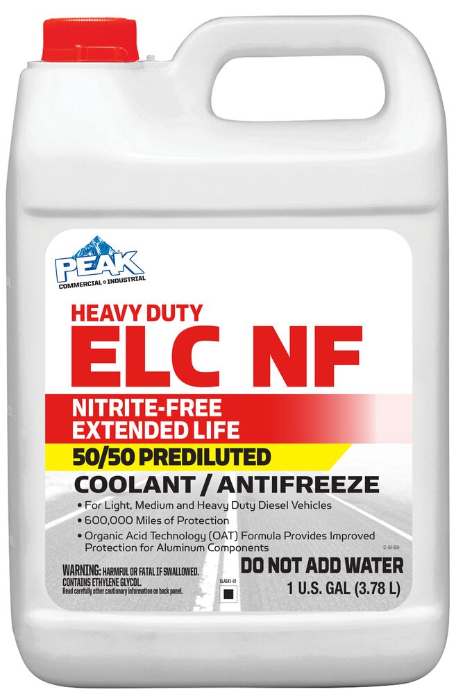 PEAK® Commercial & Industrial Heavy Duty ELC NF Extended Life Nitrite-Free Coolant/Antifreeze has been developed to meet the changing requirements of Domestic, European and Asian OEM’s.