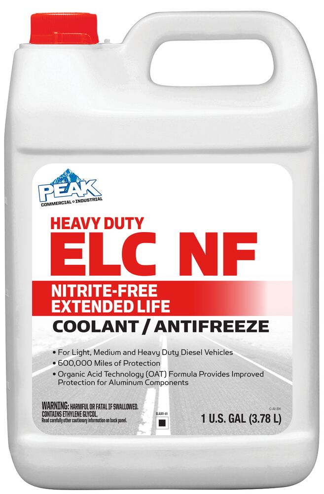 PEAK® Commercial & Industrial Heavy Duty ELC NF Extended Life Nitrite-Free Coolant/Antifreeze has been developed to meet the changing requirements of Domestic, European and Asian OEM’s.