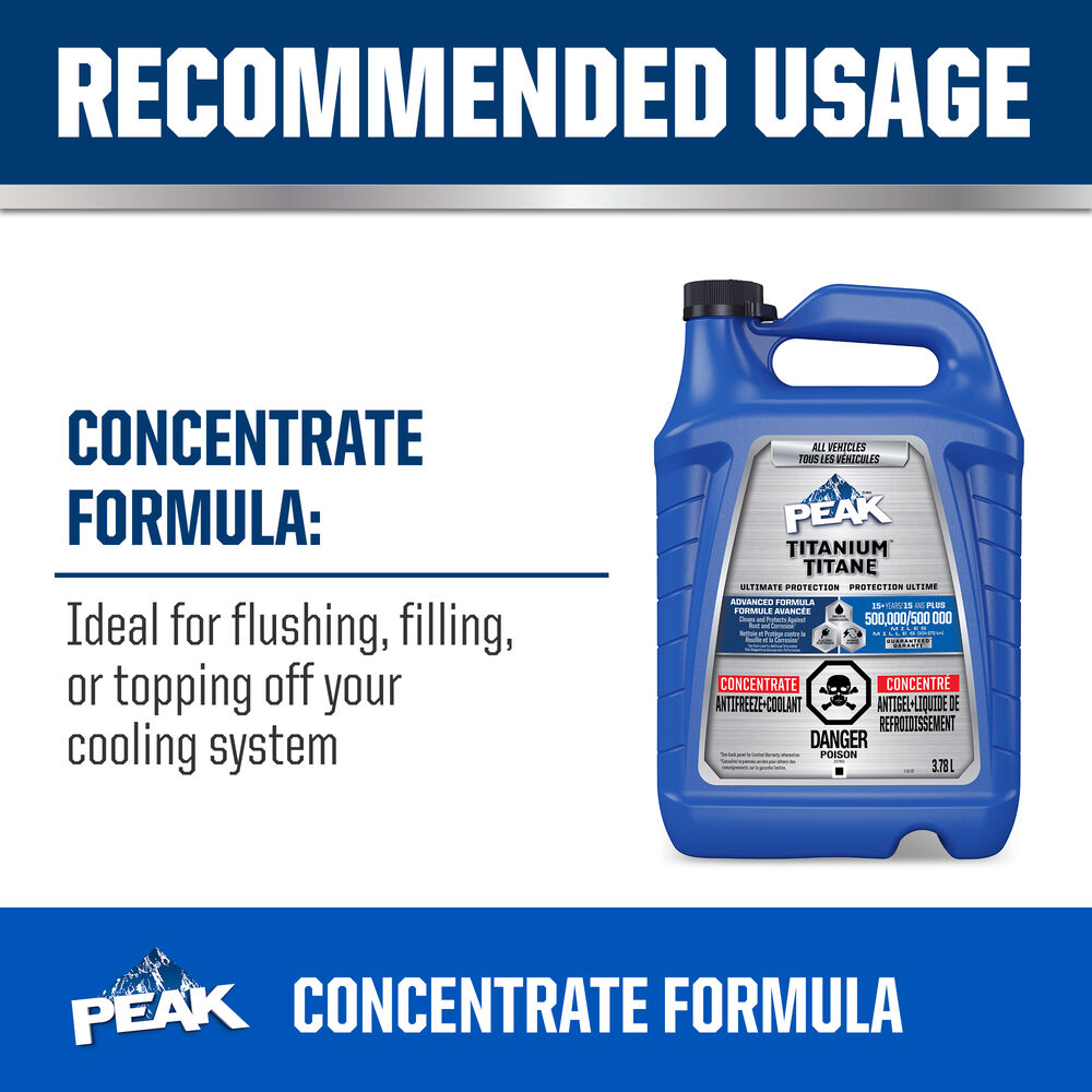 Where to BuyPEAK® TITANIUM™’s advanced formula contains a proprietary chemistry designed to clean component surfaces†, while also protecting against the formation of heat-insulating films or coatings that impair heat-transfer and are major contributors of lost coolant flow and overheating.