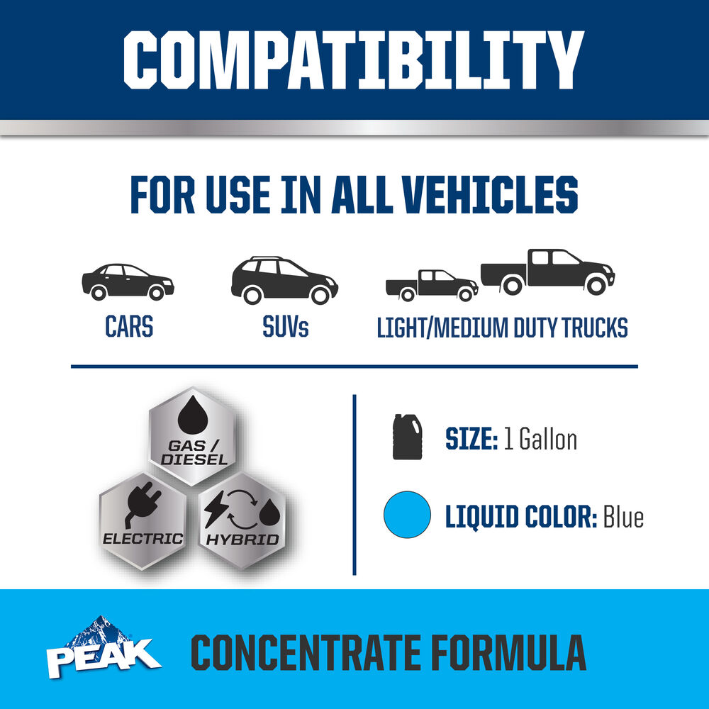 PEAK® ORIGINAL EQUIPMENT TECHNOLOGY™ ANTIFREEZE + COOLANT for ASIAN VEHICLES - BLUE is an ethylene glycol-based antifreeze/coolant specifically developed for use in any Asian vehicle requiring a Blue phosphate-enhanced organic acid technology (POAT) formulation. It contains high-quality organic acid corrosion inhibitors and is free of borate, nitrite, silicate and amines.