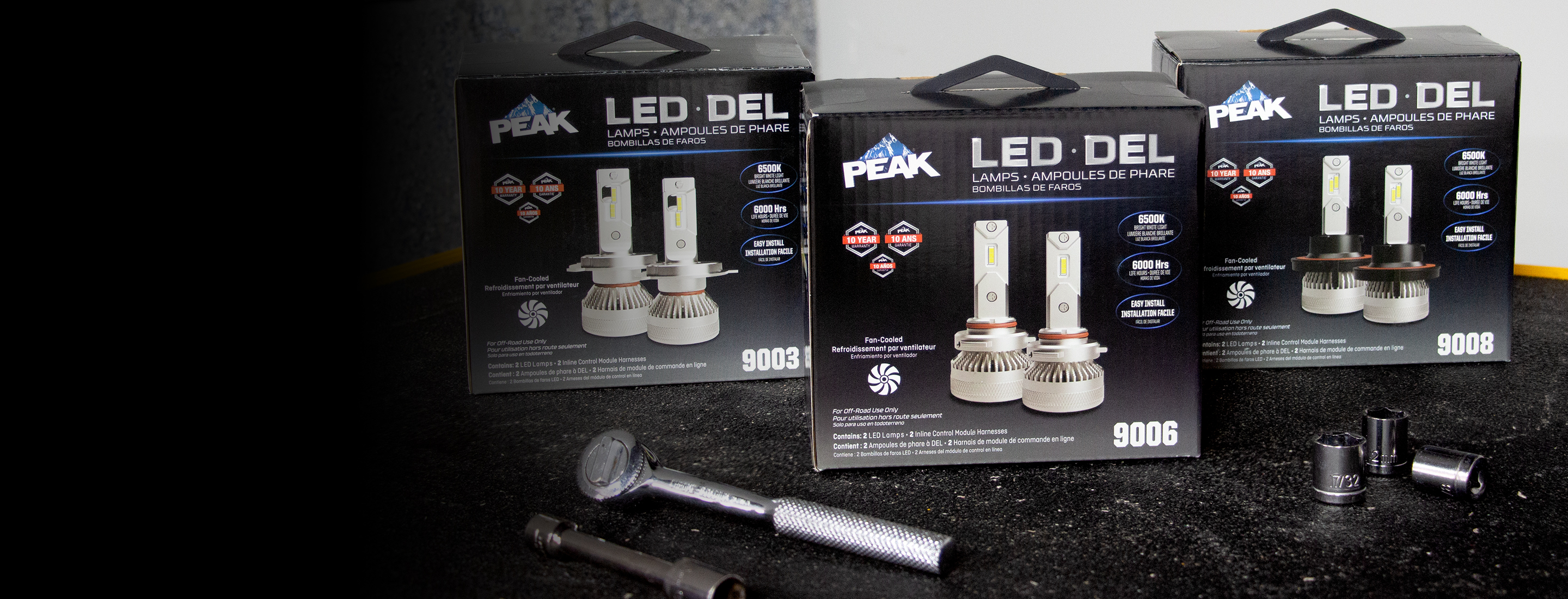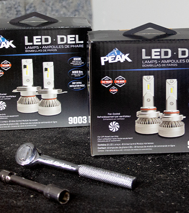 PEAK® LED Fog Lamps are designed to easily replace your factory fog lights*, giving you a powerful upgrade with up to 2,800 lumens of bright white light. Each set includes two lamps with built-in control modules that keeps the brightness steady and prevents the lamps from overheating.
