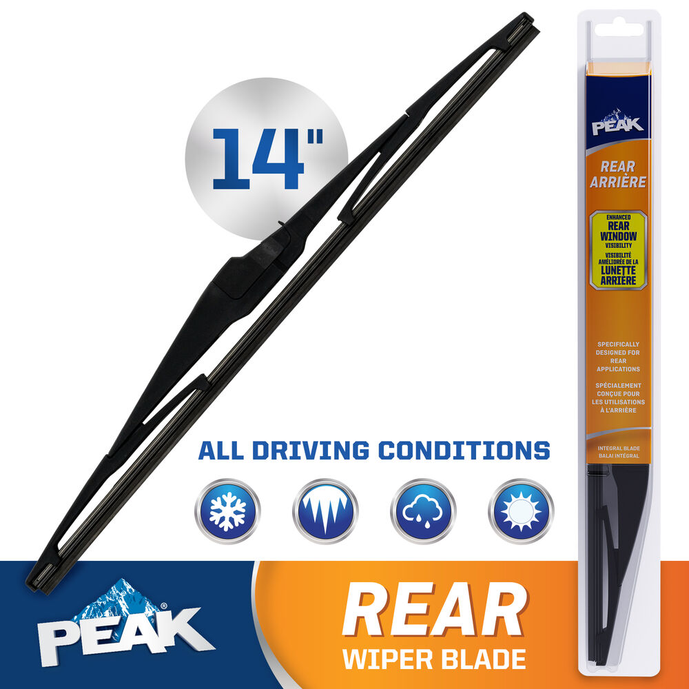 PEAK REAR wiper blades are designed to enhance rear window visibility in all driving conditions. These blades feature a precision cut wiping edge that delivers a problem-free wipe. PEAK offers a complete line of universal rear wiper blades to fit beam, integral and conventional wiper arms. Each blade is the same style as the originally installed rear blade that came with your vehicle. Installation is quick and easy with simple to follow instructions included in the package. Blades are available in lengths 10" to 16".