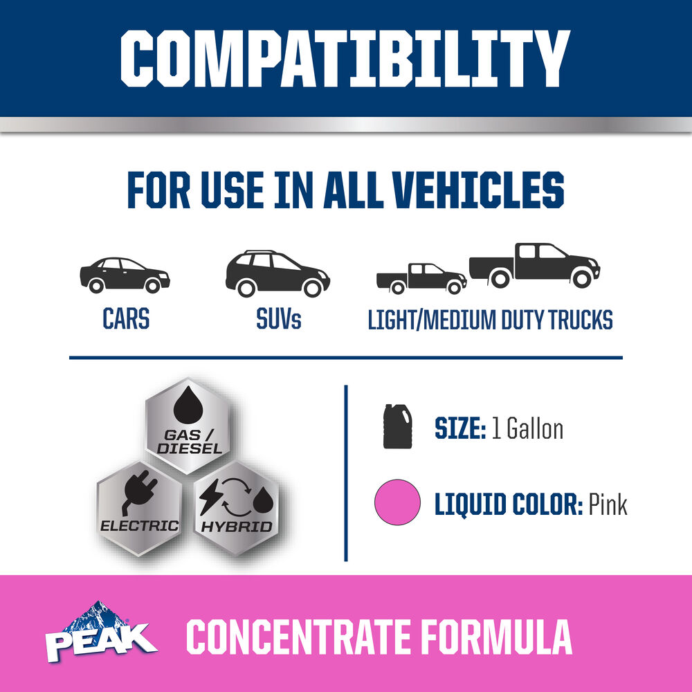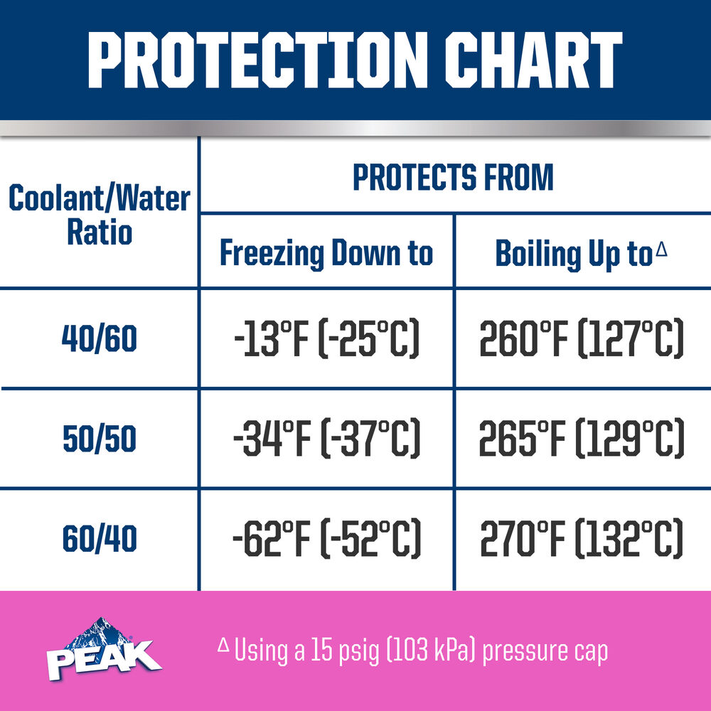 PEAK® ORIGINAL EQUIPMENT TECHNOLOGY™ ANTIFREEZE + COOLANT for EUROPEAN VEHICLES - PINK meets the performance requirements of ASTM D3306 and BS 6580. With a complete flush and fill, PEAK guarantees this coolant will provide service life protection of up to 400,000 miles or 15 years*.