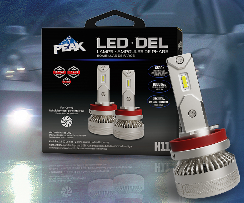 PEAK® LED Fog Lamps are designed to easily replace your factory fog lights*, giving you a powerful upgrade with up to 2,800 lumens of bright white light. Each set includes two lamps with built-in control modules that keeps the brightness steady and prevents the lamps from overheating.
