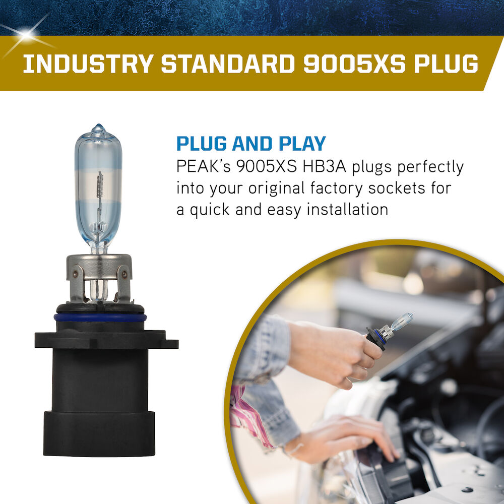 The PEAK Power Vision Gold Headlamps feature high-performance tungsten filaments and customized gas mixtures, combined with a proprietary optical coating. Safe driving at night is critical, and it starts with your headlights. The sooner you’re able to see an object on the road the quicker you can react. Make sure your headlights are performing correctly and be sure to replace them with a high-performance headlights for increased visibility.