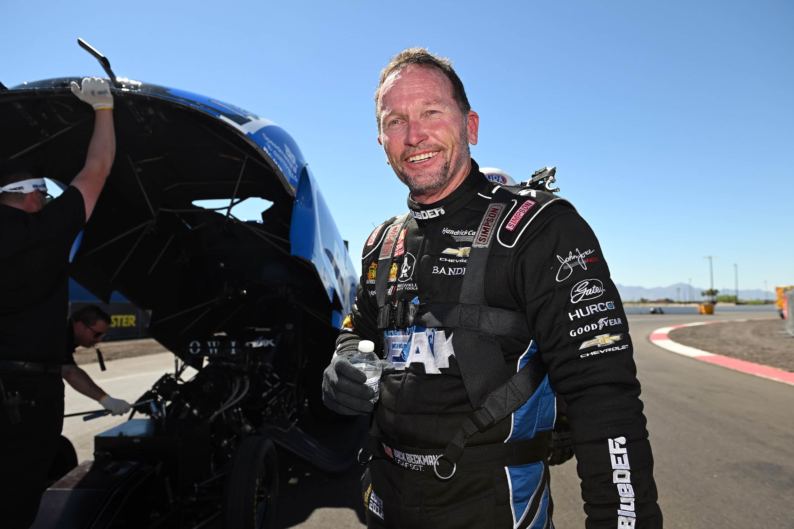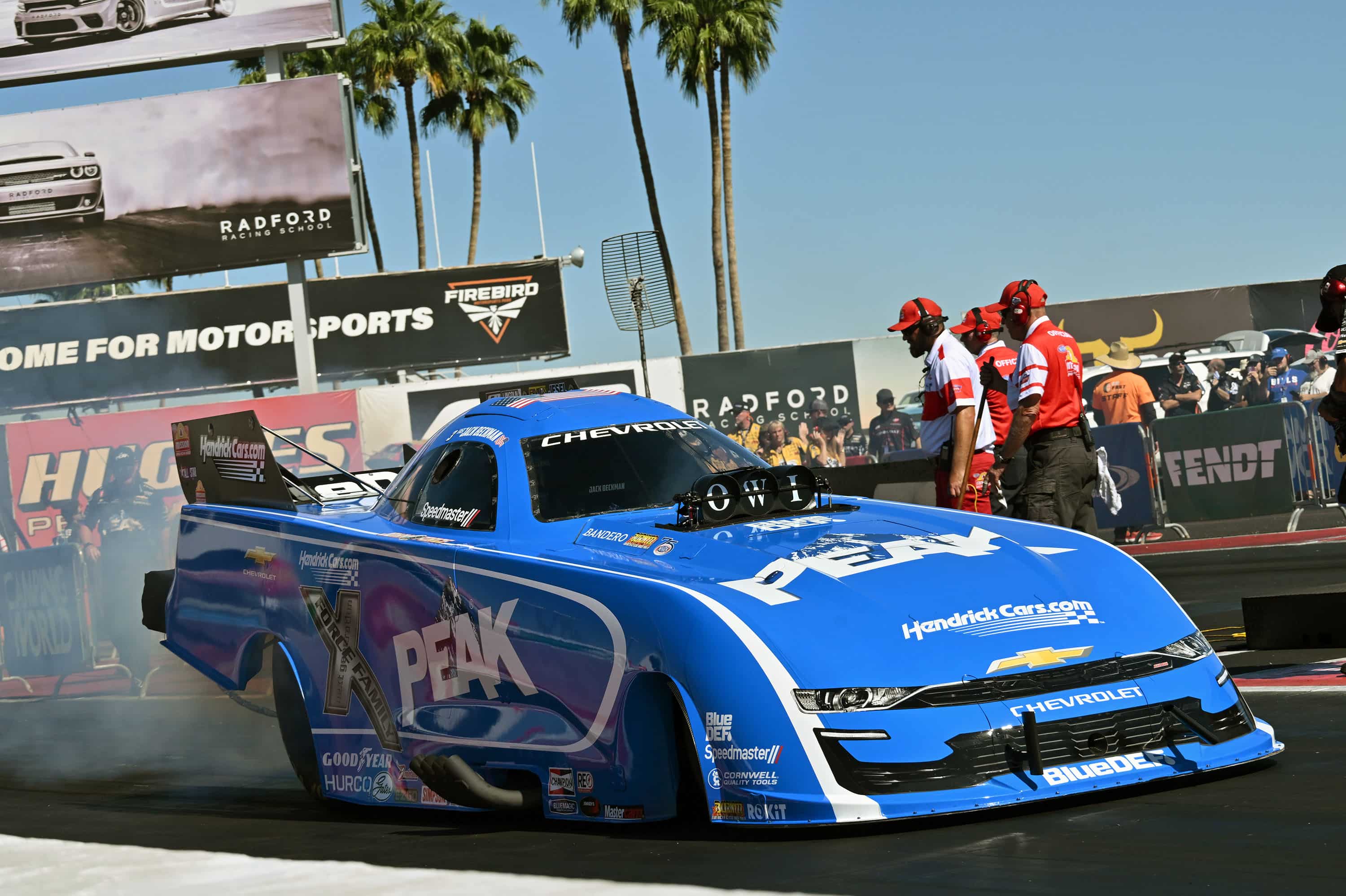 PEAK’s Jack Beckman started race day in Funny Car from the number two position, after posting solid qualifying runs including the quickest run of the final Qualifying session Saturday afternoon on the hottest track conditions the NHRA tour drivers have ever seen.