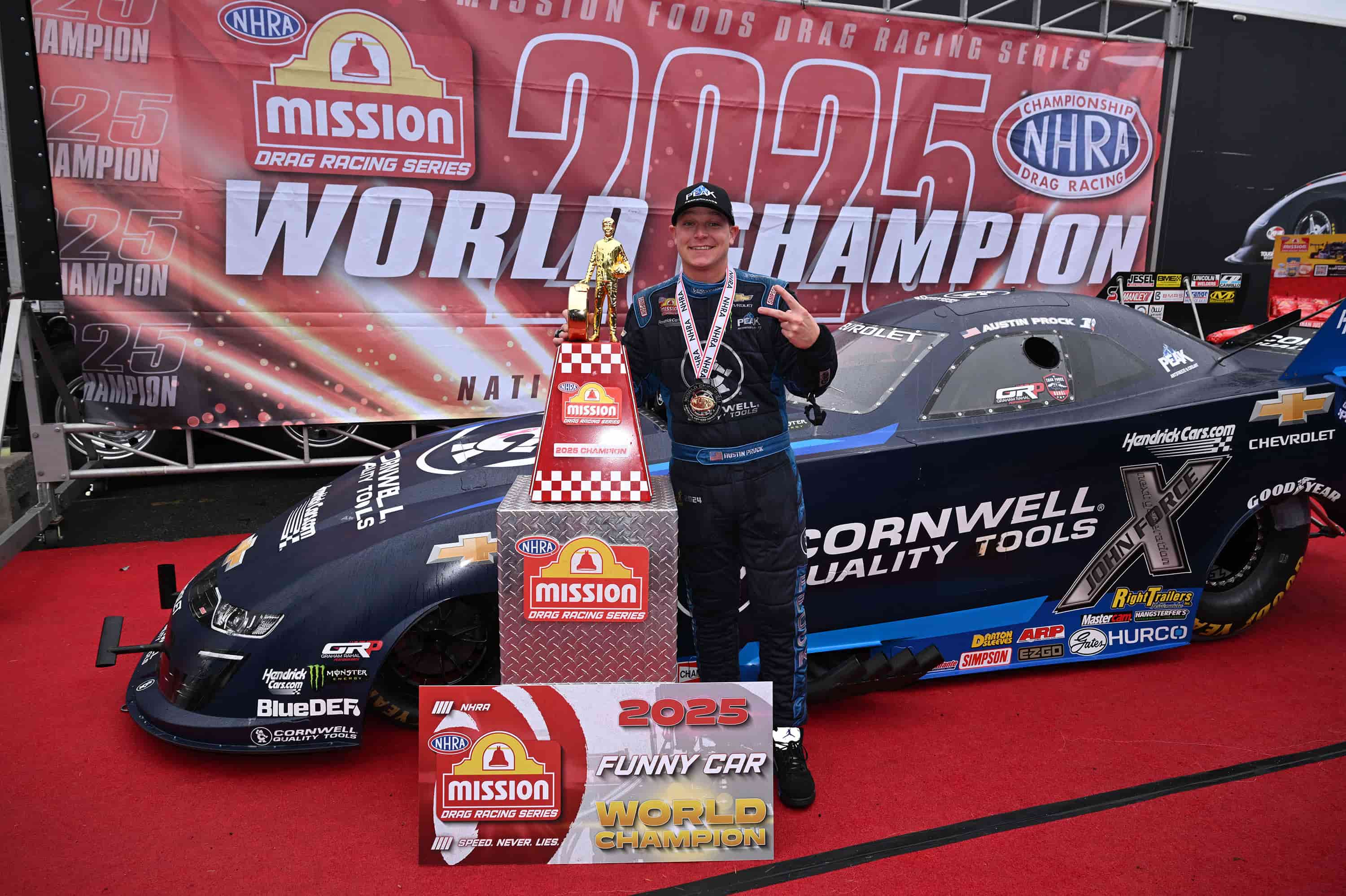 The 2025 championship adds Prock’s name to an elite list of legendary Funny Car drivers to win consecutive championships that includes his boss, John Force (1990-91, 1993-2002), Ron Capps (2021-22), Kenny Bernstein (1985-88), Frank Hawley (1982-83), Raymond Beadle (1979-81), and Don Prudhomme (1975-78).