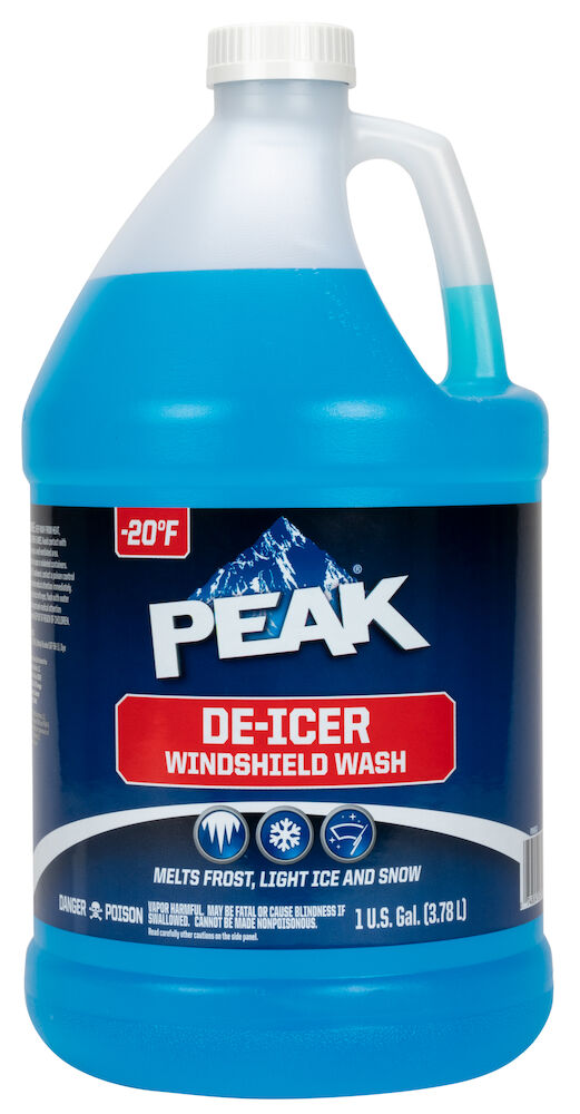 PEAK® DE-ICER WINDSHIELD WASH is a formulation that melts frost, light ice and snow providing you with increased visibility in brutal weather down to -20˚F. PEAK® DE-ICER windshield wash offers streak-free cleaning and is safe to use in any vehicle.