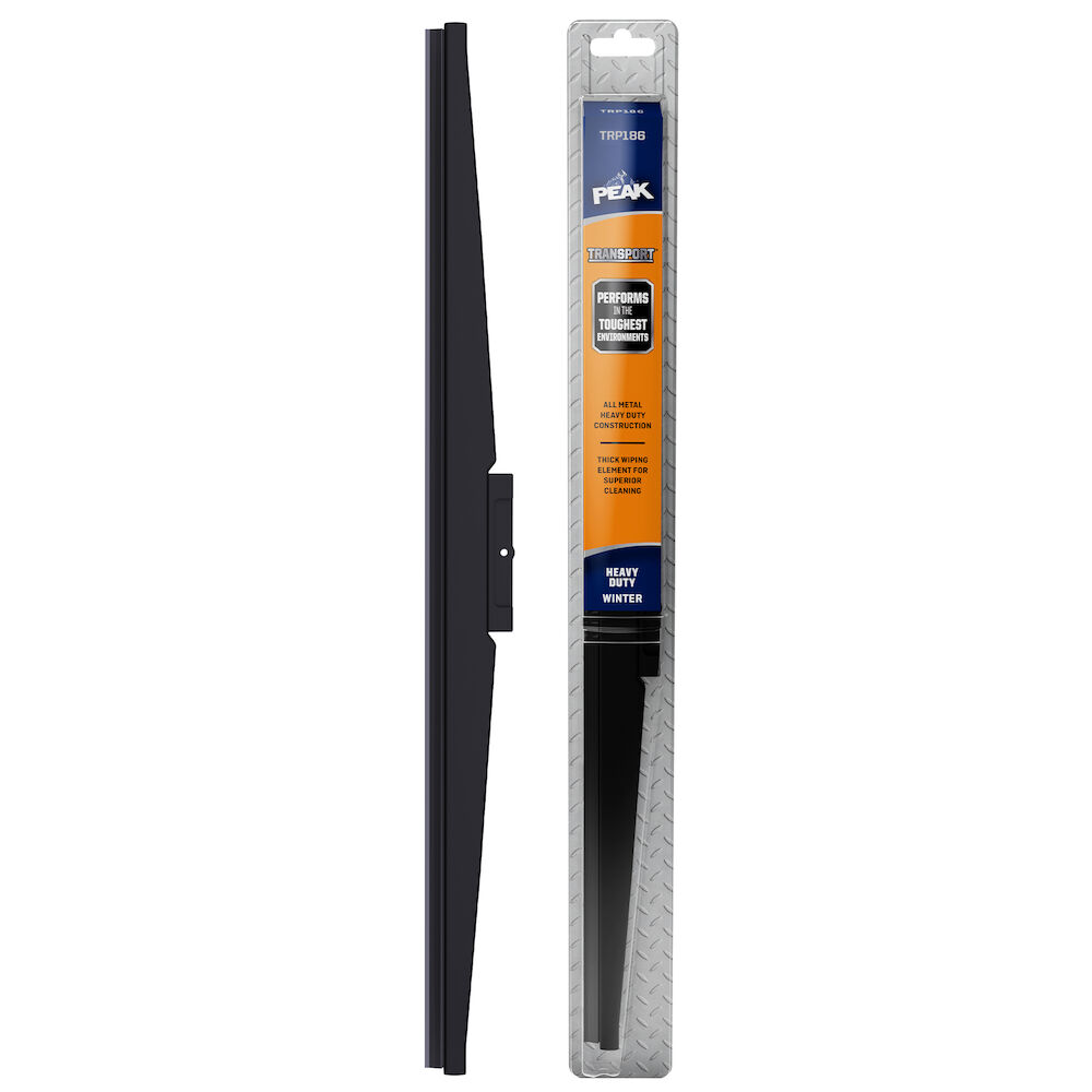 Keep your windshield clear even in tough driving conditions with PEAK Transport heavy duty wiper blades! PEAK Transport's heavy duty line fits heavy duty trucks, Class A RV’s, and school and transit buses. The durable, all metal construction stands up to rugged commercial use and harsh driving conditions, while heavy duty natural rubber helps keep visibility clearer for better safety conditions. This versatile windshield wiper blade includes all necessary hardware for a quick & easy installation, so you can replace your wiper blades in a snap. These heavy duty windshield wipers are perfect for anyone needing a higher quality performance from their wiper blades on the road!